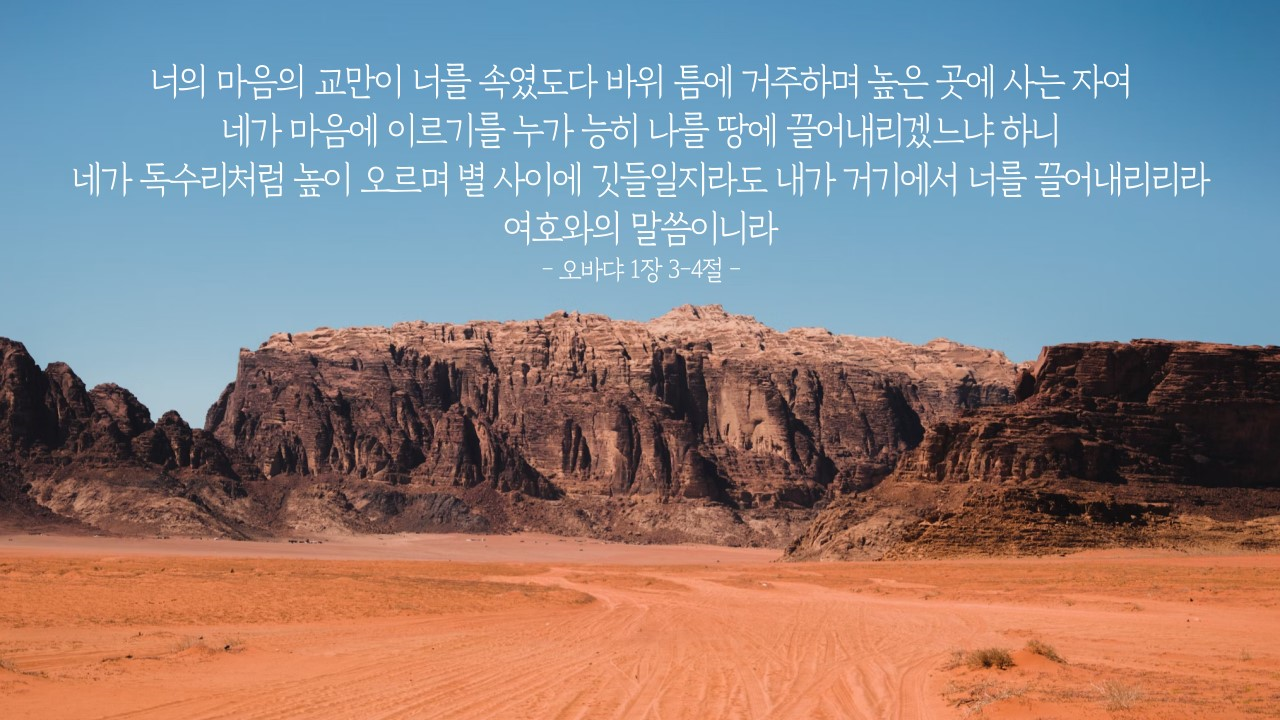 교만한 마음이 하늘까지 높아진 에돔을 끌어내리십니다.